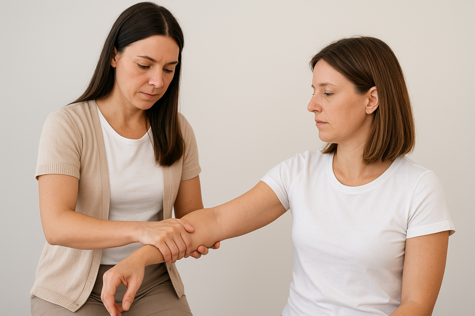 - Behandleren lægger let tryk: Trykket er ikke stærkt, men lige nok til at teste musklens evne til at “holde”.